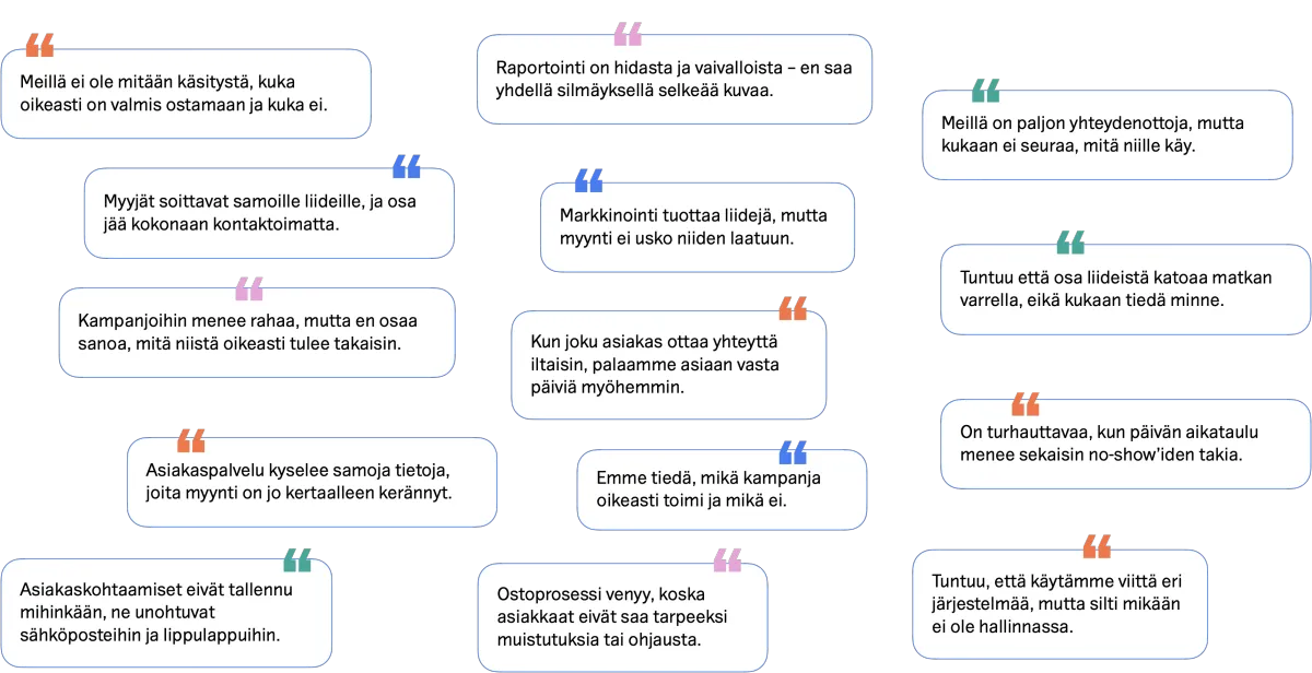 Kaikki asiakaskohtaamiset tallentuvat automaattisesti kontaktikortille, jolloin tiimillä on aina ajantasainen kuva asiakkaasta – ilman erillisiä taulukkoja tai muistiinpanoja.